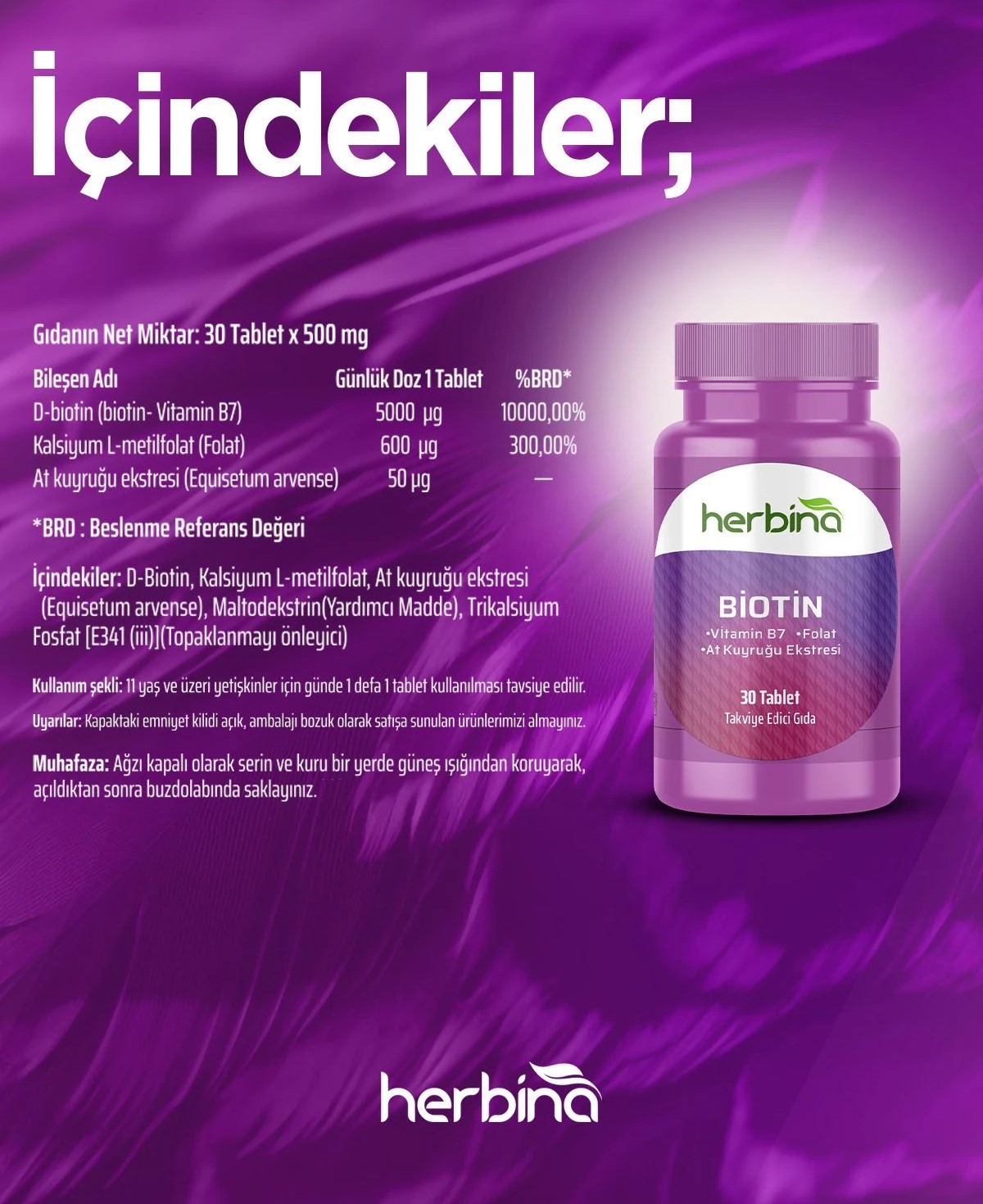 Mass+ Supplement | Vitamin | HERBİNA Biotin 30 Tablet
